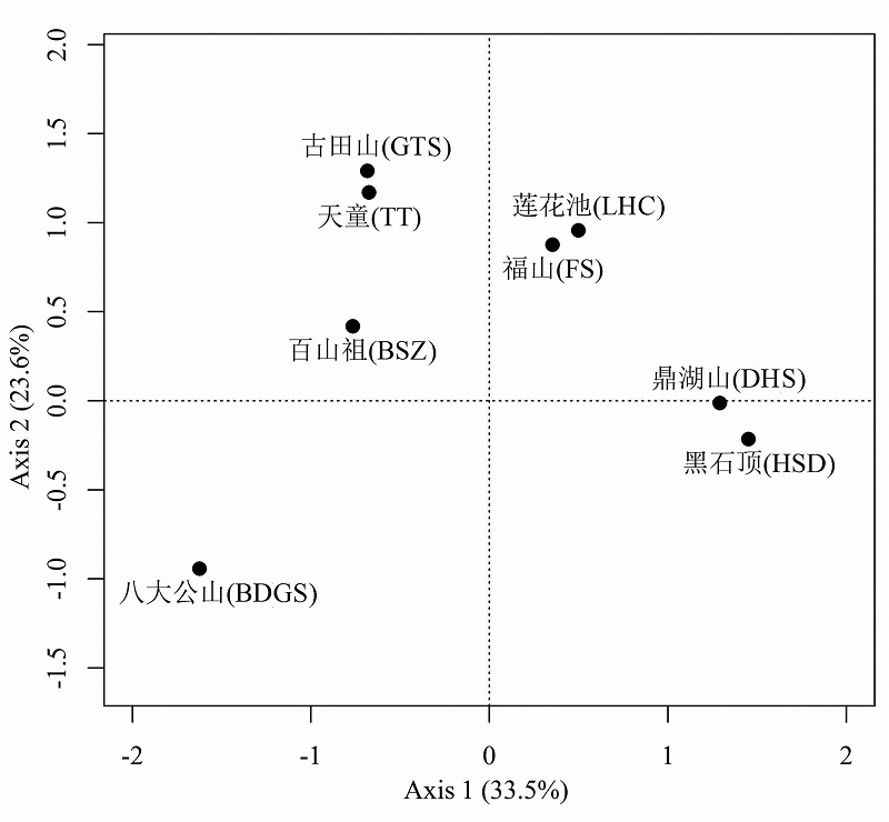 | 总计 Total | 天童山 TT | 古田山 GTS | 百山祖 BSZ | 八大公山 BDGS | 黑石顶 HSD | 鼎湖山 DHS | 莲花池 LHC | 福山 FS | |||||||||||||||||||