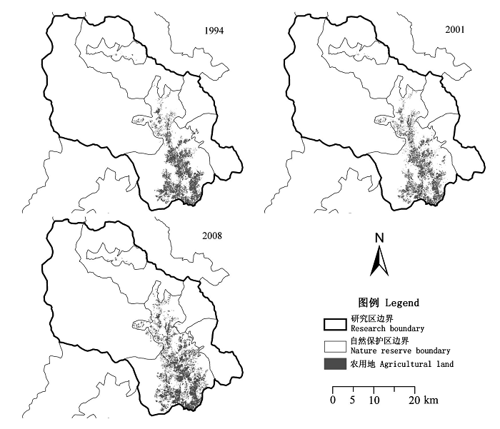 Table 5 The influence area of agricultural land on giant panda habitat in 1994, 2001 and 2008