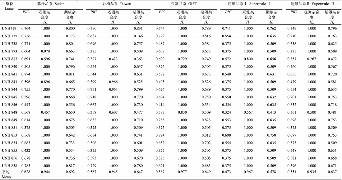 表1 5个尼罗罗非鱼品系的样本量和来源