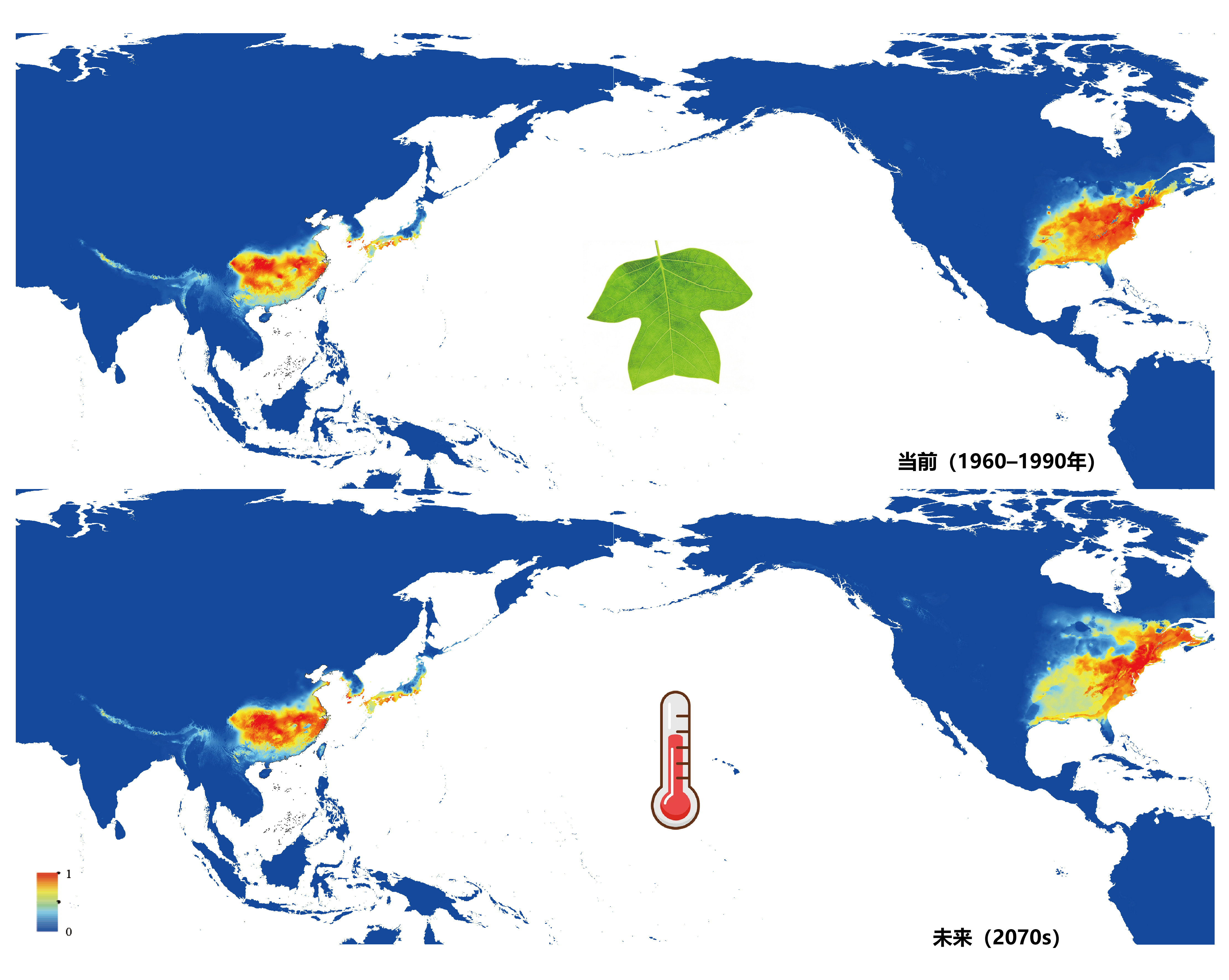 未来气候变化情景下东亚-北美间断分布属植物潜在分布区的比较