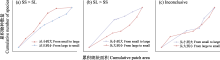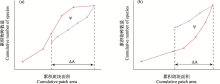 用于表征从小到大累积曲线(红色)和从大到小累积曲线(灰色)之间偏差的ξ统计量以及指标ΔA示意图。Ψ代表从最大斑块面积推导出的两条曲线下面积的差值; ΔA表示估算两个面积的区域范围。图(a)表示ξ统计量为正的情况, 图(b)代表ξ统计量为负的情况。