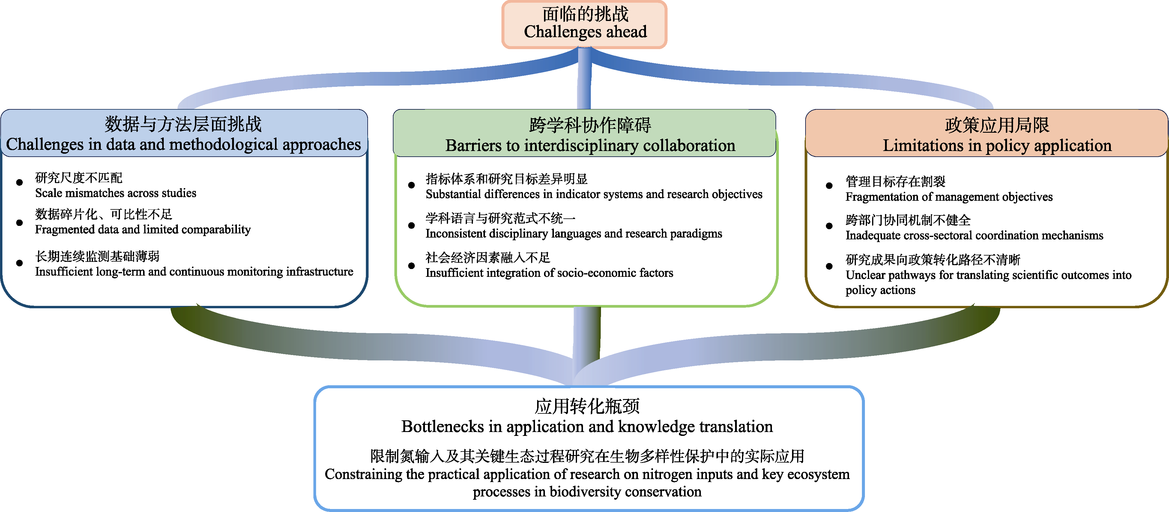 Perspectives: Despite substantial progress, significant challenges remain in translating scientific understanding of nitrogen-biodiversity interactions into effective management and policy actions. Data relevant to nitrogen inputs and biodiversity responses are often fragmented across ecosystems, spatial scales, and disciplinary domains, limiting integrative analysis. In addition, monitoring approaches and indicators remain insufficiently standardized, constraining comparisons among regions and long-term assessments. Nitrogen management policies are frequently developed in isolation from biodiversity objectives, reducing the potential for synergistic outcomes. Future research should therefore focus on integrating multi-source datasets, including field observations, molecular information, and remote sensing products, to better capture the dynamics of nitrogen-driven biodiversity change. Developing standardized, process-based monitoring frameworks will be essential for linking nitrogen inputs to biodiversity responses in a policy-relevant manner. Strengthening coordination across sectors—particularly agriculture, environmental management, and biodiversity conservation—will further support the incorporation of nitrogen considerations into governance and decision-making. By adopting a process-informed perspective that explicitly connects nitrogen inputs, key ecological processes, and biodiversity outcomes, research in this field can provide more robust support for ecosystem restoration, adaptive management, and the implementation of the Kunming-Montreal Global Biodiversity Framework.