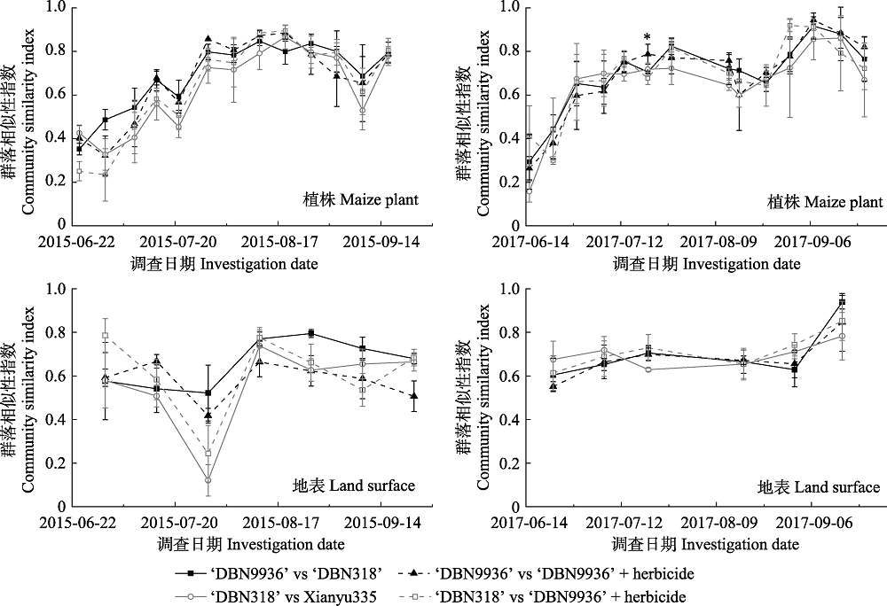 Table 2 Species richness index of arthropods of different maize treatments in 2015 and 2017