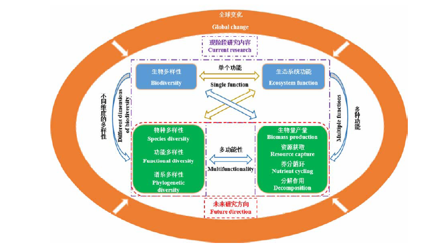 第一次系统分析了不同分类群、营养级和生境条件下生物多样性对生态系统多功能性的作用。This study presented the first systematic investigation of biodiversity’s effect on ecosystem multifunctionality across multiple taxonomy, trophic levels, and habitats.