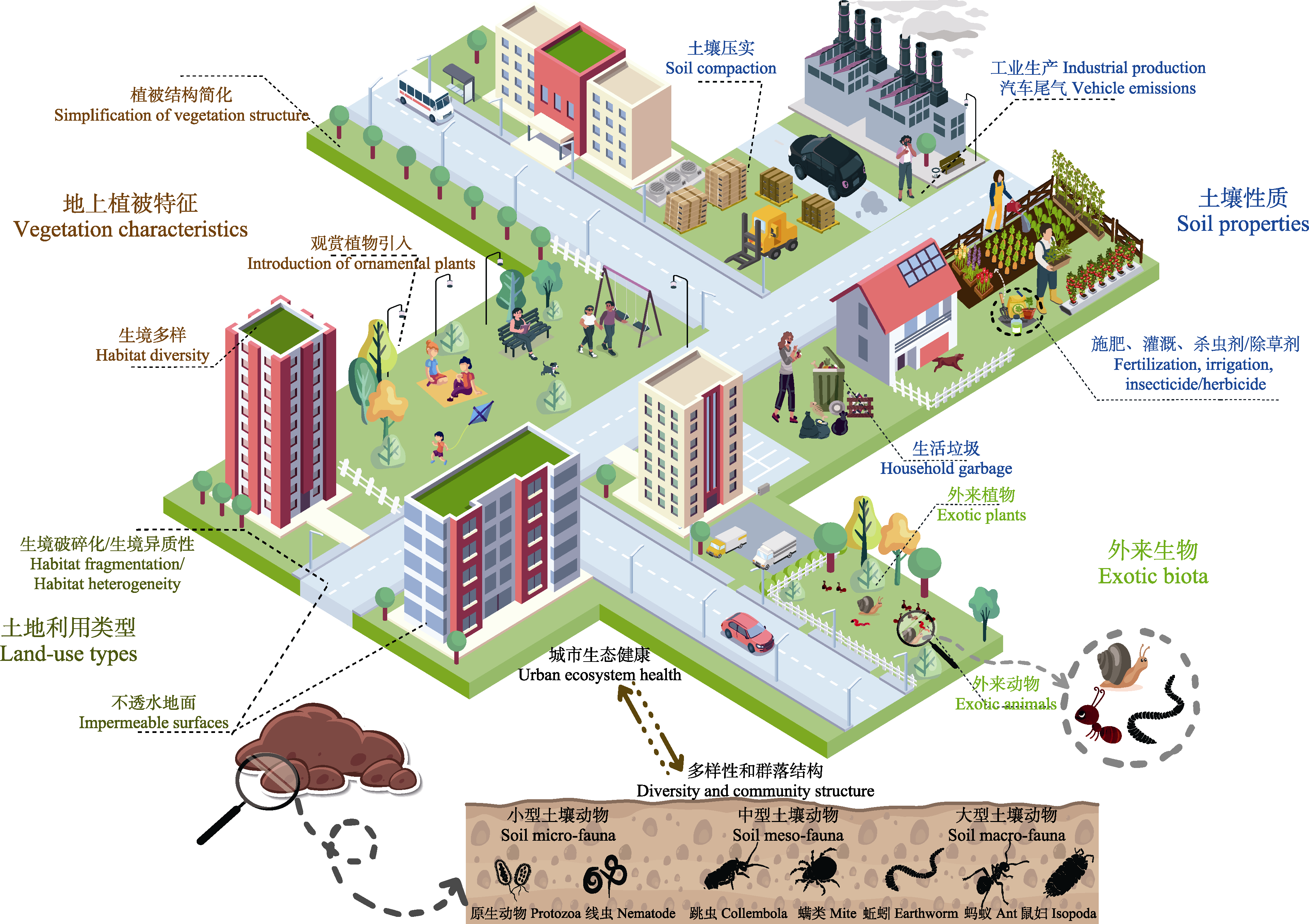 | Fig. 1 Major pathways by which urbanization affects soil fauna diversity and community structure |