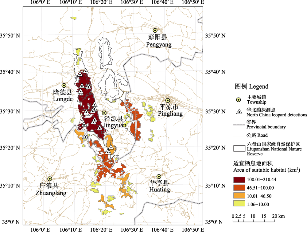 | 图3 六盘山华北豹适宜栖息地分布图 |