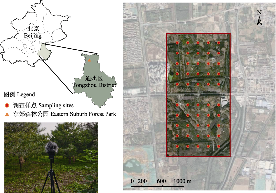 | 图1 东郊森林公园研究区域(华北树木园)与样点分布 |