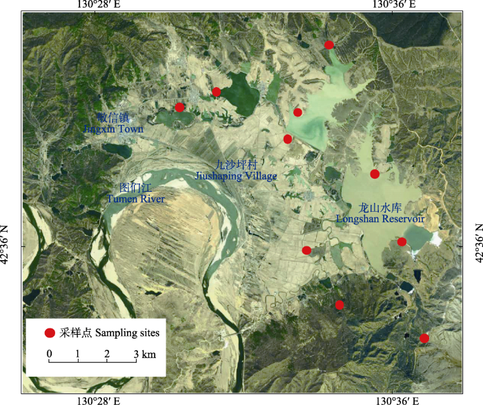 敬信湿地(42°26′-42°42′ N, 130°24′-130°39′ E)是图们江下游的典型湿地, 位于吉林省珲春市敬信镇, 是我国距日本海最近的区域, 最近处仅约10 km (图1)。湿地东部与俄罗斯滨海边疆区接壤, 南部隔图们江与朝鲜庆兴郡、雄基郡相望。受日本海影响, 敬信湿地春秋季多风, 气候温和潮湿, 属中温带近海性季风气候区, 年平均气温为5.6℃, 年均降水量为823.7 mm。春季为全年多日照季节, 其中3月日照量最高, 达237 h, 为早春迁至的湿地水鸟提供了适宜的热量条件(杨兴家和金玄善, 2000)。湿地总面积超过80 km2, 最低海拔高度5 m, 主要包括湖泊、草本沼泽、灌丛和森林沼泽等。受人类干扰影响, 超过80%的自然湿地已变成水田、旱田和池塘等(Zheng et al, 2017), 许多水鸟会利用这些生境觅食(吴景才等, 2018)。早期调查显示图们江下游共计有湿地水鸟9目12科56种(傅桐生等, 1981), 其中夏候鸟30种, 旅鸟26种, 区系组成以中古北界为主, 占水鸟总数的75.0%, 其次为广布种和东洋界鸟类, 分别占21.4%和3.5%。敬信湿地被誉为候鸟的“五星级驿站”, 是鸟类北归和南迁的中间停歇地, 每年春季开始有大量候鸟到此停留和觅食, 包括豆雁(Anser fabalis)、白额雁(A. albifrons)、绿头鸭(Anas platyrhynchos)、针尾鸭(A. acuta)、斑嘴鸭(A. zonorhyncha)、普通秋沙鸭(Mergus merganser)、虎头海雕(Haliaeetus pelagicus)、白尾海雕(H. albicilla)、丹顶鹤(Grus japonensis)等, 以鸭科雁鸭类候鸟的数量最多, 形成“鸟风暴” (杨兴家和金玄善, 2000; 杨桄等, 2006)。