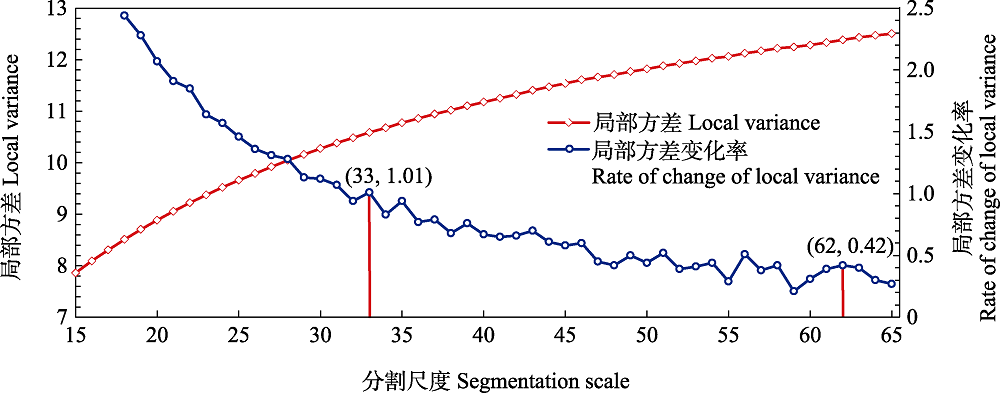 | 图3 不同分割尺度的局部方差及其变化率 |