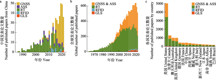 ... ).进入20世纪中期后, 无线电技术的引入使得基于传感器的标记与追踪成为可能, 研究者能够持续地、远距离地获取动物的空间位置信息; 随后, 卫星定位、微电子等各种新技术的快速发展, 使得传感器类型多样化、小型化, 动物追踪的手段愈加丰富和成熟, 应用到的动物类群和研究领域也日益广泛(Whitney, 2022).目前, 国际上野生动物追踪研究所使用的基于传感器的追踪技术主要包括5大类, 分别是无线电遥测(radio telemetry, RT)技术、基于Argos卫星系统(Argos satellite system, ASS)的卫星追踪技术、基于全球定位导航系统(global navigation satellite system, GNSS)的卫星追踪技术、无线射频识别(radio frequency identification, RFID)技术和光敏全球定位传感器(light-level global location sensor, GLS)技术. ...
